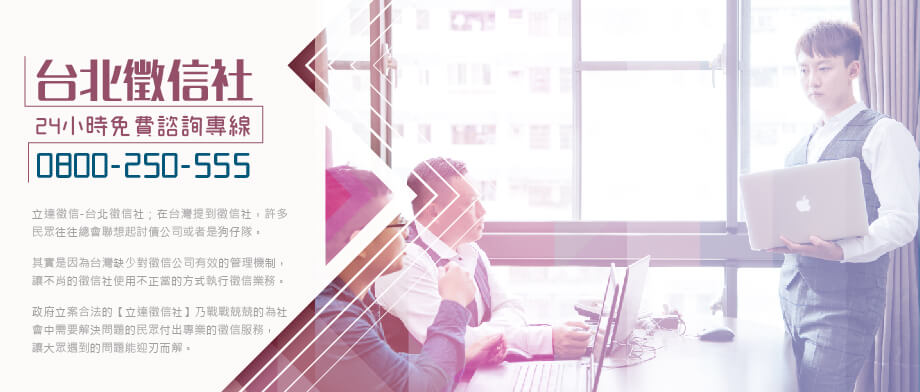 立達徵信-台北徵信社-在台灣提到徵信社,許多民眾往往總會聯想起討債公司或著是狗仔隊,其實是因為台灣缺少對徵信公司有效的管理機制,讓不肖的徵信社使用不正當的方式執行徵信業務,政府立案合法的立達徵信社乃戰戰兢兢的為社會中需要解決問題的民眾付出專業的徵信服務,讓大眾遇到的問題能迎刃而解。