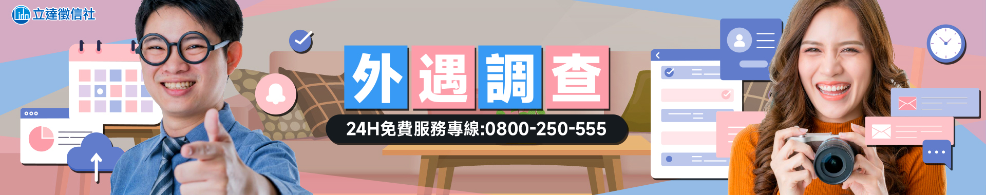立達徵信社開業多年,於徵信領域積累豐富經驗,成功處理過眾多感情婚姻案件,也深刻理解每位當事人對感情問題的痛苦和不安,誠摯希望能以自身的專業和實力,協助客戶解開心結,和平解決感情中的外遇問題。若您也有外遇調查需求,歡迎諮詢立達徵信社,我們將以您的需求為首要考量,個別提供外遇調查、蒐證協助、法律救濟、感情挽回、小三勸退等專業協助,全方位解決您的婚姻問題。