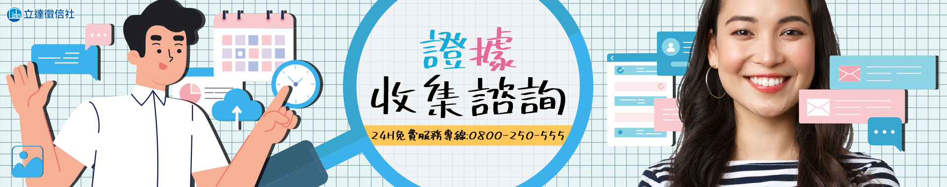 為了解決民眾的生活疑問,立達徵信社提供免費諮詢服務。在蒐證領域中,我們也樂於分享徵信社的蒐證建議與方法。若您對「證據收集」有任何疑問,歡迎隨時致電諮詢立達徵信社。