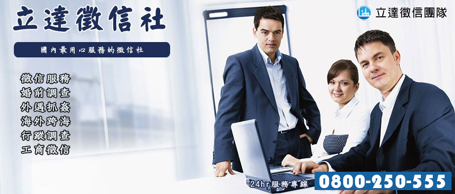 立達徵信社建議您,若您發現另一半最近在相處時的態度丕變,或是行蹤鬼鬼祟祟、早出晚歸,歡迎來電洽詢外遇蒐證,我們提供24小時的免付費電話(0800-250-555),有專業的人員傾聽您的困擾,為您解決問題。