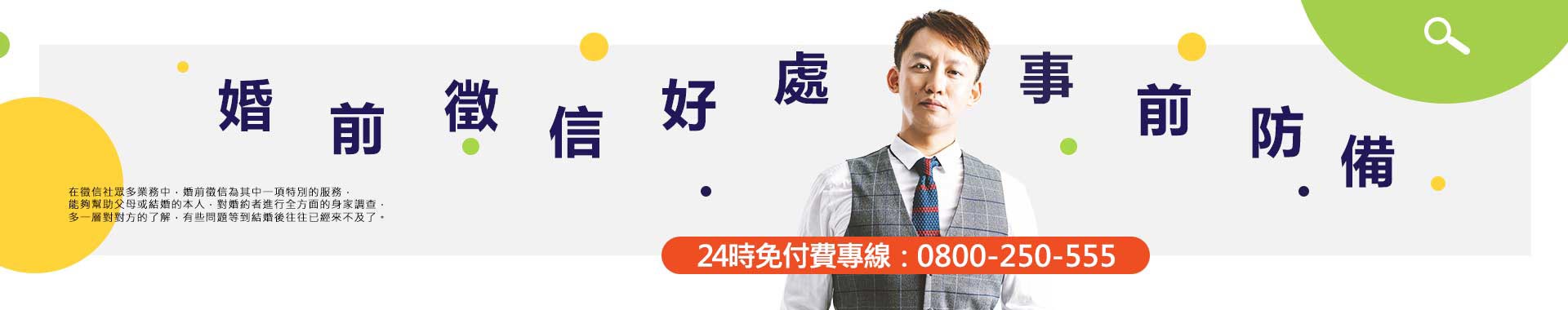 專業辦案透明價位 24時免費諮詢0800-250-555 人人都有幸福的權利,為您的幸福把關。每段感情邁入下一個里程碑,雙方互相許諾、步入婚姻,本是一件相當美好的事情,但殘酷的是,婚姻從來不是你愛我、我愛你,這麼簡單就可以相伴一生,它關乎到兩個陌生家庭的結合、柴米油鹽的繁瑣,不管在一起多久,總有些人在你結婚後,才真正認識他。