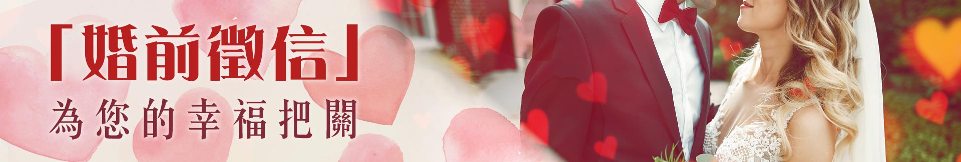 無論是閃婚還是愛情長跑,戀愛跟婚姻大不相同,而婚姻是人生中唯一一次自己選擇家人的機會,因此絕對要慎重。對方對你是否真心?對你是否有所隱瞞?常有人說,無知的人最幸福,但無知才能維持的幸福,真的是你所期待的婚姻嗎?婚前徵信替你查驗真實,讓對方極力隱瞞的秘密,納入你掌控之中。婚前徵信調查包含: