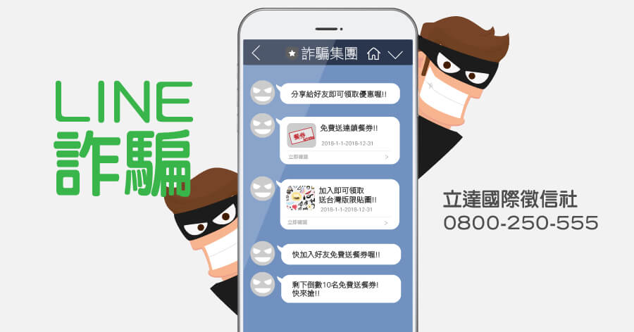 立達徵信社也碰過幾次LINE詐騙,加上我們的工作本來就必須面對不認識的客戶加好友。正因如此,我們更需提高警覺,誰知道電腦、手機另一端是等待幫助的客戶,還是有所圖謀的詐騙者呢?