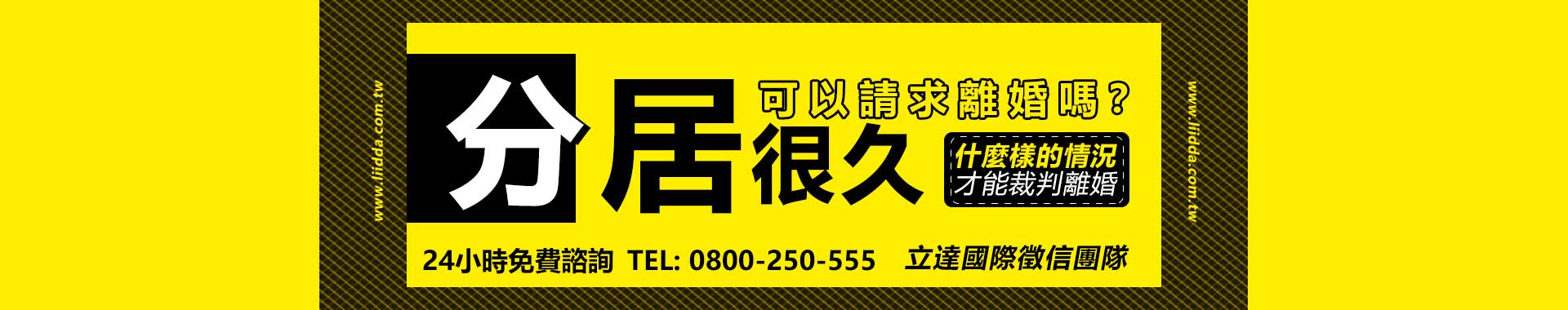 專業辦案透明價位 24時免費諮詢0800-250-555 什麼樣的情況,才能裁判離婚?從7年前開始,小A與丈夫大白大吵一架之後就分居了,也不再聯絡。也因為小A並沒有要挽回婚姻、拯救現況的意思,便決定要與大白徹底離婚。只是,雖然大白認為離婚沒關係,但是財產分配跟子女監護的問題卻無法配合,所以兩個人談了很多次都沒有結果,小A真不知道何時才能夠擺脫這段名存實亡的婚姻。立達徵信社在此告訴您,法律上規定夫妻在結婚後,除了有不能同居之正當理由外,互負同居義務,依法院的看法,所謂「不能同居之正當理由」,包括以下幾種情形:1.夫納妾。2.夫與他女人同居。3.夫繼續與他人通姦,妻得不請求離婚,拒絕與夫同居。4.夫犯不名譽之罪,出獄後無一定之住所。5.夫之親屬虐待妻。6.正當旅行、留學、患病、徵召服兵役。7.有民法第1052條裁判離婚原因,不請求離婚,均構成不能同居之正當理由。許多電視節目中,都會說夫妻如果想離婚,可以先行分居,只要分居過了一定期限,就可以以此為由來請求裁判離婚。但實際上,我國民法並沒有關於分居超過多長時間就可以訴請裁判離婚的規定,儘管這樣的例子在國外確實是有的,我國也有少數判離的例子,但我國並沒有完全明確的規定。但若是從我國民法第1052條第2項規定來看:夫妻間有重大事由,難以維持婚姻者,可以請求法院裁判離婚。所以,只要夫妻分居事實明確,而在主觀、客觀上,婚姻已無復合或維持可能者,那麼,長久分居的情形應該可以被認為具有難以維持婚姻的重大事由,請求法院判決離婚。立達徵信社在婚姻問題、感情問題方面,不僅擁有豐富的經驗,亦與專業合法的律師事務所合作,我們秉持著不便的初衷與熱誠,絕對是您可以放心、安心委託的徵信夥伴,若是您有任何關於這方面的疑義,也非常歡迎您來電連絡我們與我們洽談諮詢:0800-250-555,我們24小時全天候為您服務!