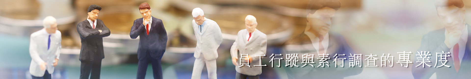 專業辦案透明價位 24時免費諮詢0800-250-555 員工行蹤與素行調查一間公司就像一個大型的精密儀器,裡面的每一個齒輪與樞紐都需要好好的保養與運用才能讓機器運轉自如,員工就是所謂的齒輪,是公司無法或缺的樞紐,由此可想而知如果裡面有一個零件是破損或有瑕疵的,那小到一個部門,大至整個公司都有可能受到影響,所以每個好版或主管們都必須要對自己底下的員工們有一定的了解才好。當問題發生,就能立刻鎖定可疑人物,將危害由根拔除,在傷口擴大前就給予治療,保障企業的名譽不受到損傷。