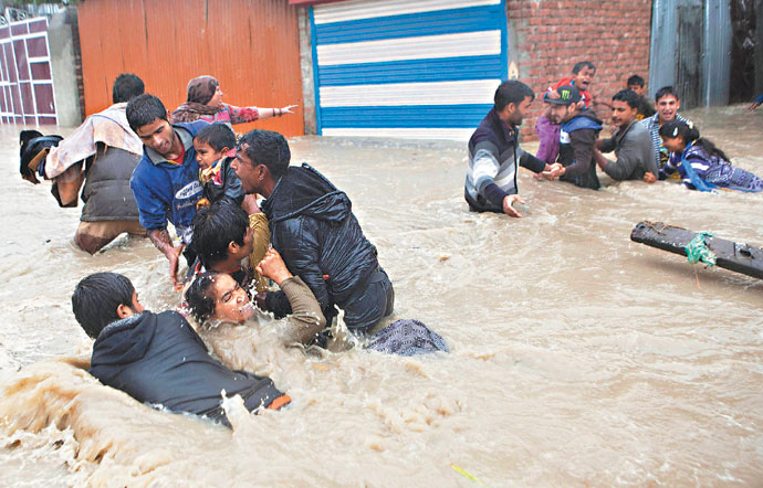 儘管雨勢目前已經停歇,洪水卻在夜間暴漲,印度控制區首府斯利那加市(Srinagar)的吉魯姆河(Jhelum River)氾濫,淹沒房舍、軍事基地和醫院,許多住在低窪地區的居民猝不及防。