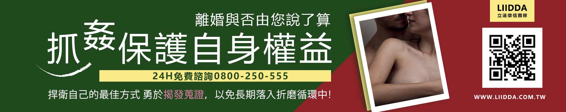 專業辦案透明價位 24時免費諮詢0800-250-555 離婚與否由您說了算社會風氣愈趨開放,多少邪惡假自由之名,踐踏他人的尊嚴。徵信社-外遇、婚外情,是脫離既定生活的一種方式,得不到的總是最好的,就如同張愛玲《紅玫瑰與白玫瑰》「紅白玫瑰分別代表純情的妻子與妖豔動人的小三,但兩者的地位可能會隨著時間流逝而互異其位」。因為得不到,而懷有憧憬,進而產生外遇。外遇新聞常常出現在新聞上,名人、以人更是鬧得轟轟烈烈佔據新聞版面,為了避免自身權益因外遇而受損,因此請徵信社抓姦蒐證是保障自我權益的好方法。因為一時的心軟、愛面子、不敢面對,繼續容忍另一半的出軌行為,是不智的。案例:B小姐為一名上班族,老公為人人生羨的牙科醫生,但近來發現老公行蹤不定、早出晚歸,遮遮掩掩、鬼鬼祟祟,請徵信社調查後發現老公外遇了!但礙於面子、丈夫的身分地位,選擇隱忍,但外遇不斷,與多名女子藕斷絲連。因此,捍衛自己權力的最佳方式為,勇於揭發,並請徵信社蒐證,以免長期落入折磨的循環中。掌握主導權!求趁現在,讓立達徵信社成為您抓外遇有利的幫手。
