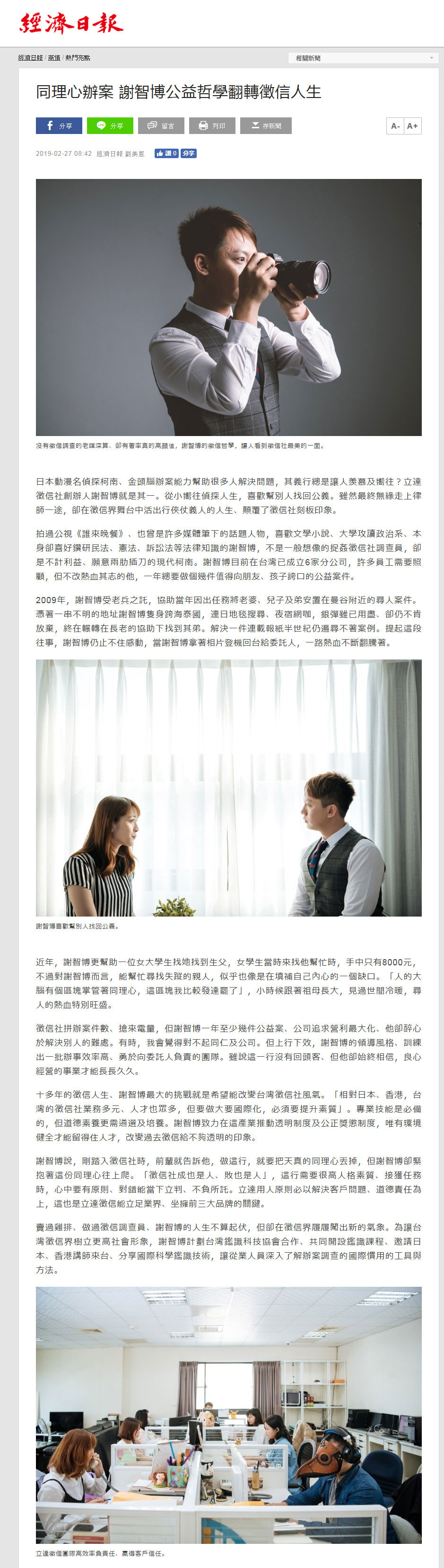 報導來源:經濟日報-同理心辦案 謝智博公益哲學翻轉徵信人生