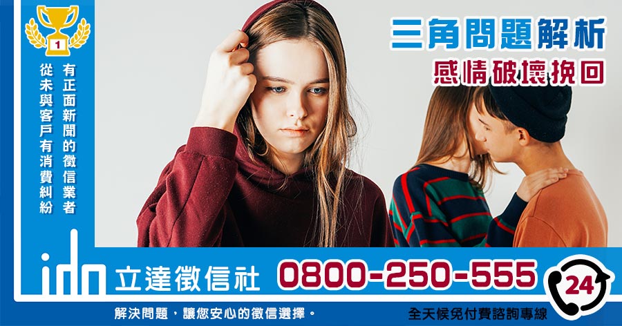(發佈時間:2015-04-20 17:05:46) ![]() ----------------------------------------------------------------------------------------------- 現在社會上,自由戀愛的風氣相當盛行,讓本來就複雜的男女關係變得更複雜,當兩人美滿的愛情或是婚姻,出現了第三者,因此有了出軌、外遇等等背叛婚姻、感情的危機,這些事情就會開始慢慢的侵蝕彼此的信任,讓兩人的感情婚姻路上,遭遇了絆腳石。有時候,我們曾經在感情中,不小心做了別人的小三小王,也許第三者之於他的愛,並不遜色於你對他的愛,但是只是因為比你晚一步遇到他,所以這種罪名就在自己的身上。若是在這段感情中,是三個人共同維持的話,總有一天,其中一方會因為沒有得到寵愛,產生了忌妒心,因此可能就會想辦法脫離這段關係,有時候會想盡辦法將對方驅逐出去、或是自己選擇痛苦的結束這段感情,因此我們常常看到很多人會因為感情的關係,失去理智,做出了過於衝動激烈的反抗行為,因此若是當您面對到了這樣的三角問題,請務必要謹慎小心的處理這件事情,要是踏錯、走錯了一小步,則有可能掉進萬惡的深淵中,萬劫不復的後果。立達徵信社,協助您在感情路上所遇到的各種困境,當您遇到了小三的侵襲,我們願意拔刀相助、義氣相挺,將小三驅逐出您的感情圈中,讓您的婚姻能夠更長久。您是否目前也遇到了第三者的危機呢?撥打立達徵信社免付費電話0800-250-555,讓我們幫您將第三者全部驅逐出去! 三角問題案例-感情破壞挽回現在社會上戀愛風氣開放,因此許多人都有感情上的第三者出現的問題,我們立達徵信社最近接到一位陳小姐的委託,陳小姐表示,她在上個月發現丈夫與一名女子發生婚外情,但是還是希望丈夫可以回心轉意,回到自己的身邊,因此委託我們破壞她丈夫與小三的感情,並且協助陳小姐挽回婚姻。在簽訂完正式合約之後,我們立刻開會討論出一個最佳的方案,並開始執行,在經過這幾天的調查,我們發現陳小姐丈夫的小三其實是一名想要詐騙她丈夫錢財的女子,並且在我們進行蒐證之後,找那名小三談談,並且告訴她我們手上有的一些資料,那名小三知道現在要是不退的話,可能會因此吃上官司,或是遭到黑道的追殺,便答應我們要跟陳小姐的丈夫分手,幾天後小三遵守諾言,陳小姐的丈夫雖然心情不是很好,但是當他回家之後,看到自己的老婆,不管他在外面經歷過多少風雨,家庭還是最安全的避風港,從此之後,與陳小姐繼續美好的婚姻生活。立達徵信社協助您解決各種感情問題,是您最貼心的好夥伴。 |