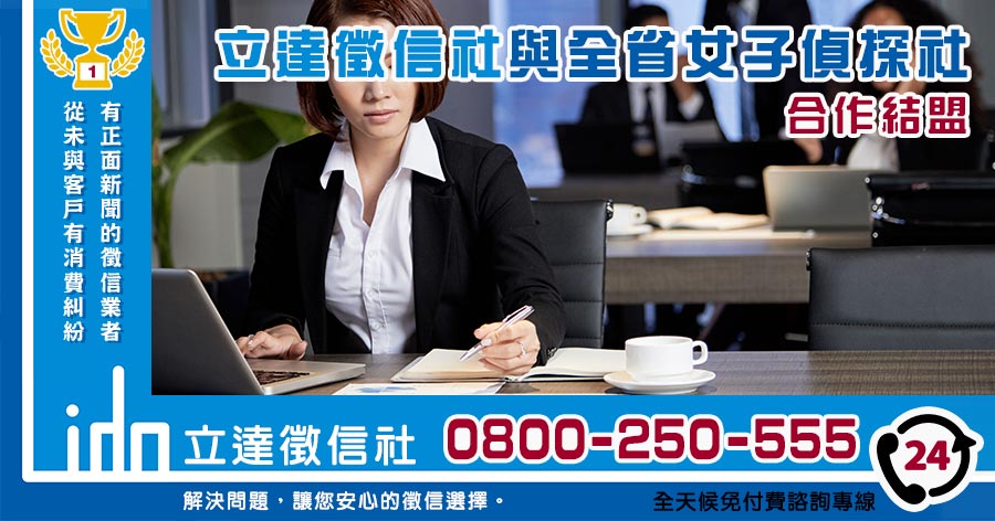 立達徵信社在全台灣各地區,皆有設立徵信據點,提供民眾一個完善專業的徵信服務,立達徵信社以豐富的徵信調查實務經驗,熱忱訓練有素的調查人員,來為民眾解決他們所遭遇到的各種鵝難雜症,為民眾的權益進行把關。 關於全省女子偵探所立達徵信社與全省女子徵信有限公司共同合作,為社會大眾解決各種疑難雜症,現在社會上,有太多的不確定因素,所衍生出來的各種問題,讓民眾感到頭痛,立達徵信社與全省女子徵信社一同深入民情、明查暗訪,到台灣各地去了解民眾現在所面臨的問題,共同找到新的出路。全省女子偵探所與立達徵信社是良性競爭的合作夥伴。您是否在婚姻感情路上面遇到阻礙呢?或是您想要找一位久未連絡的朋友或是家人?還是您需要專業的法律諮詢呢?讓立達徵信社與全省女子私家偵探社為您解析,我們與專業的律師事務所進行合作,協助您在尋求解決的方法時,依循合法的法律規範,順利的將難題解決!您是否有任何徵信的需求呢?撥打立達徵信社與全省女子偵探公司免付費專線0800-250-555,讓我們協助您渡過人生的困境。 |