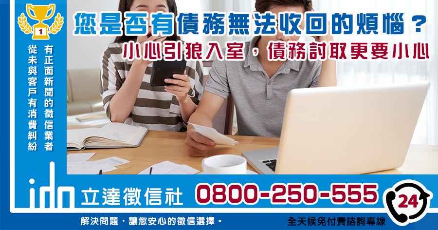 討債,真的沒有想像中那麼簡單。您是否也有相關的債務需求呢?請撥打0800-250-555立達徵信社免付費專線,我們線上24小時都有專員,為您提供最貼心專業的徵信服務。同時也要提醒朋友們,網路上的「推薦討債公司」要特別注意,免得錢還拿不回來,自己就先被薛了一陣。