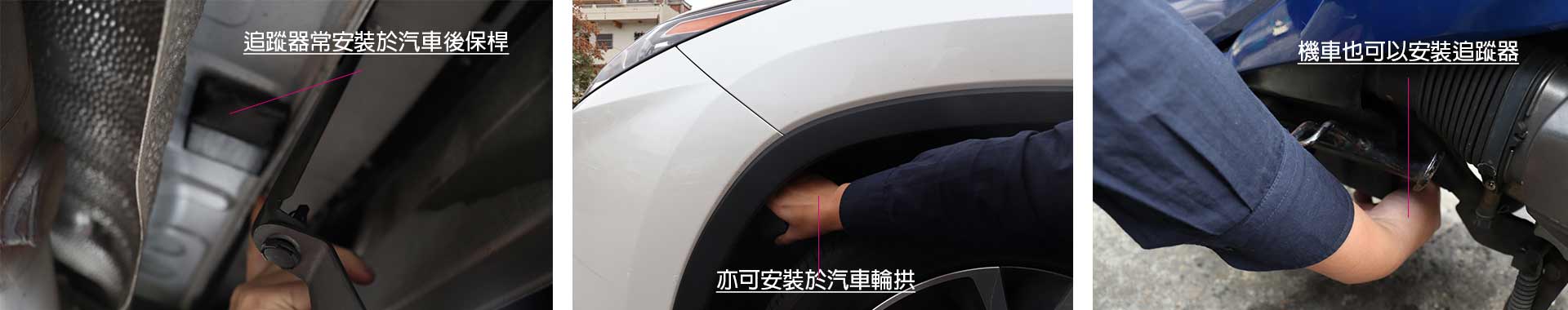 了解安裝前的步驟後就來聊聊,究竟汽車追蹤器應該安裝在哪個位置呢?由於定位追蹤器屬於科學儀器,是必須遠離「熱源」,因此靠近熱源的「引擎」與「排氣管」是毫不考慮地,汽車的「輪拱」與「後保桿」則是安裝優先選擇的位置,而定位追蹤器不局限於汽車,機車也能安裝,且追蹤器本身即有強力磁鐵能直接吸附於交通工具上。
