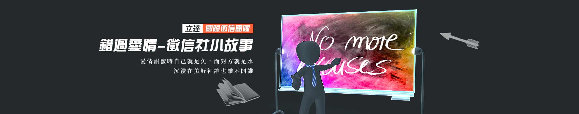 專業辦案透明價位 24時免費諮詢0800-250-555 不再讓人生存有遺憾愛情在甜蜜的時候自己就是魚,而對方就是水,誰也離不開誰,覺得這個世界上再也沒有誰可以讓自己離開對方的視線,就這樣沉浸在愛情的美好裡,靜靜享受著每一個時刻的歡愉。每個人都有可能在誤會中就輕易的錯過了愛情,即使這個誤會只是來自一陣風,只要我們有勇氣再敲一敲門,或許我們就可以敲響對方的心扉,進駐彼此的心裡了。