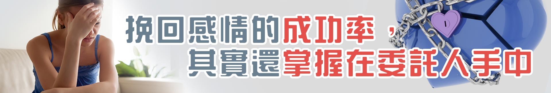 更甚,挽回感情的成功率,其實還掌握在委託人手中。只要願意改變自己,願意付出一切去挽回對方,讓對方感受到自己的誠意和愛的話,就算這段感情可能已經到盡頭了,也有機會起死回生。