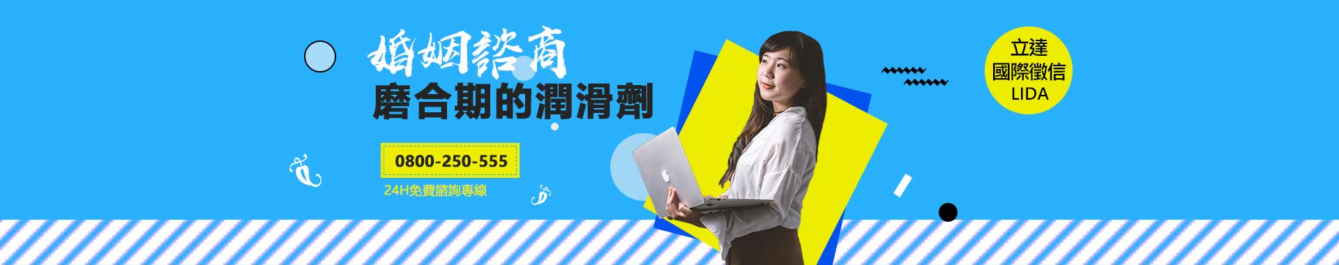 專業辦案透明價位 24時免費諮詢0800-250-555 婚姻諮商部門-立達徵信婚姻是一件多麼美好的事,即使經營婚姻是我們一輩子永遠的課題,卻也是一種甜蜜的負擔。婚姻之所以美好,就是因為從結婚的那一刻起,你的人生將不再孤單,這樣此生相許的誓言,正是愛情偉大的見證,所以若是婚姻出現了問題,最好盡快尋求婚姻諮商的協助,診療婚姻的病因才是有效根絕問題的方法。婚姻諮商的好處是可以幫助夫妻更加了解自己,也可以更加瞭解彼此。每一對夫妻都是經過生活上不斷的磨合再磨合在經營一段婚姻的,而爭吵就是磨合的過程,只要能夠彼此互相信任,互相包容,那麼婚姻生活一定會更加美滿,這也是婚姻諮商師存在的原因,提供磨合時期的潤滑劑。在第三方客觀和專業的建議下,婚姻的衝突問題比較容易得到緩解,所以國外有很多夫妻在婚姻出現問題時,都會求助婚姻諮商來解決。您需要一個專業的婚姻諮商師嗎?立達徵信社可以協助您處理婚姻上的問題,我們善於傾聽、分析,可以有效的幫助您對於自己的婚姻問題做出一個全盤的了解,若是您有需要我們服務的地方,歡迎您隨時打電話與我們聯絡,讓我們為您竭誠服務。