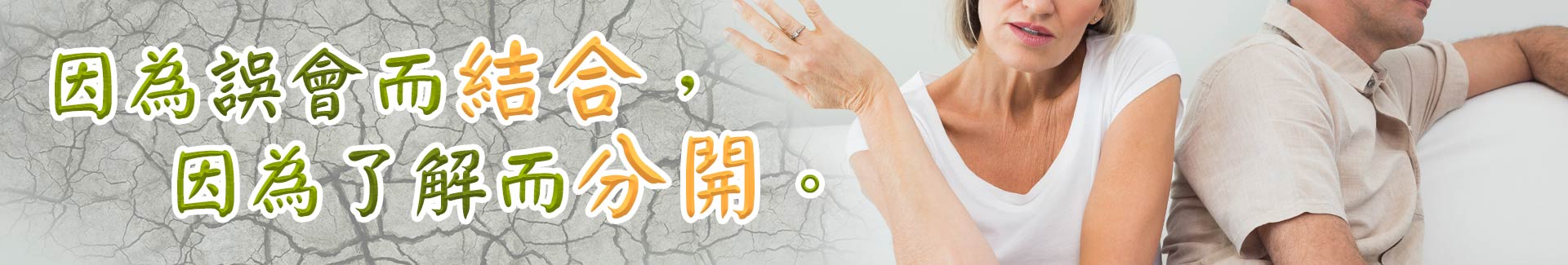在許多的感情糾紛、婚姻關係失和的案例中, 我們常發現其中的原因不乏是因為:雙方之間產生了長久的誤會而無法解開, 又或者是從一開始就不夠認識彼此而導致隔閡日漸加深;而種種的誤會及不解都會是扼殺一段感情的幕後兇手, 若是在尚未真正熟悉之前就倉促的步入婚姻, 那麼婚後的隱憂便可想而知了。