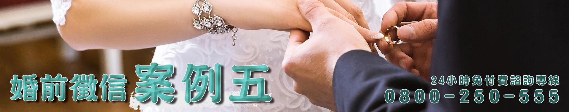 專業辦案透明價位 24時免費諮詢0800-250-555 婚姻及感情的糾紛案例從事徵信行業許久,也看過不少關於婚姻及感情的糾紛案例,想藉由多年的辦案經驗向大家訴說婚前徵信的重要性。許多情侶都是在結婚前夕,才爆出許多交往時不曾發現的問題,例如雙方的經濟條件及家中情況等;而有不少人因為觀念所致,或許忌諱以婚前徵信來調查對方,最後硬著頭皮結婚的下場便是讓自己的情況更顯得困窘與尷尬。