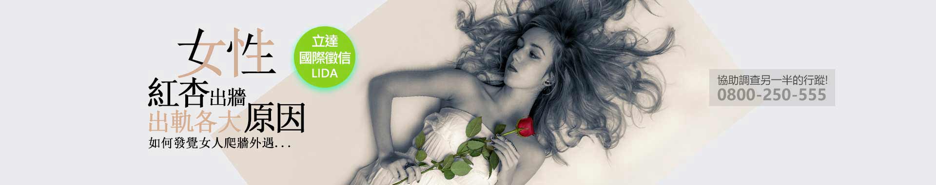 專業辦案透明價位 24時免費諮詢0800-250-555 女性出軌的原因進人女性出軌的數量隨著社會經濟發展,女性主義崛起而有略微上升的趨勢。徵信社外遇蒐證是拯救婚姻的一帖良藥,出軌的蛛絲馬跡是容易被忽略的,久而久之,您就成為滿臉綠光的無知丈夫。若女人有突然開銷增加、刻意梳妝打扮、在深夜常藉故外出、通聯記錄異常等等,均為出軌的前兆,丈夫們應及早發現,因預防勝於治療,婚姻乃夫妻雙方互動而維持,非單方面的遷就。若有相關問題,請找專業、認真負責的立達徵信社徵信,幫您查詢配偶或男/女朋友的行蹤。