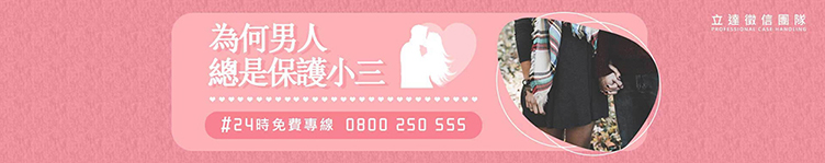 專業辦案透明價位 24時免費諮詢0800-250-555 受男人保護的小三1. 男人對小三正在意亂情迷,後宮甄鐶傳中皇上總是比較寵愛寵妃而不是王后是一樣的道理,正妻在印象中總是比較強勢的,而小三總是比較沒有保障的,保護心態油然而生,就會想保護小三。2. 男人喜歡扮演英雄和救世主的角色,而小三總是表現會撒嬌溫柔體貼,比正妻更瞭解一些男人在正妻面前不會表現的另一個真實面且表現得楚楚可憐。3. 畢竟小三是兩人婚姻預料之外介入的第三者,男人通常或多或少都對小三懷有一些複雜的內心愧疚在,所以至少在出問題時希望小三能全身而退。