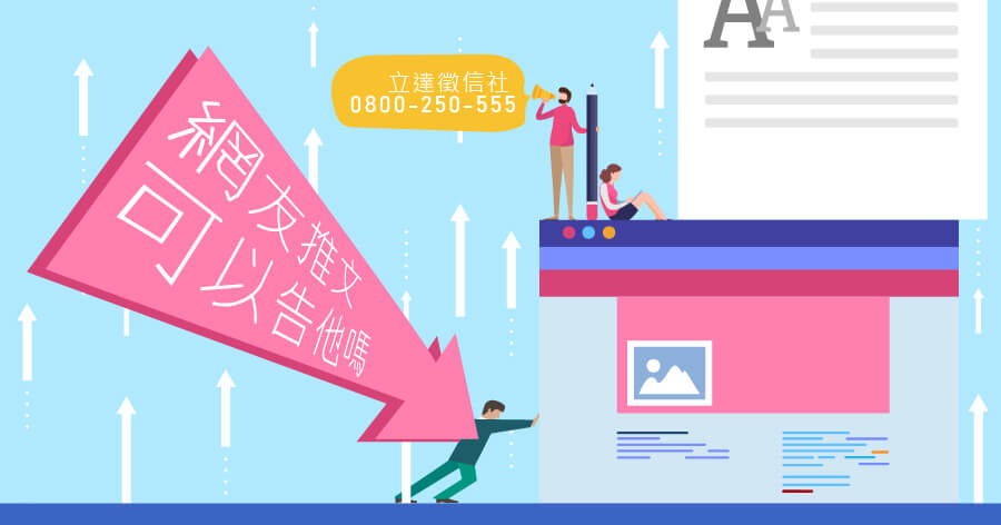 有人甚至因此擦槍走火,網路上的言論延燒至法庭上。讓網路成為戰火延燒之地。之前立達徵信社跟朋友聊天時,對方提到他在PTT話題中跟人討論,沒想到被酸言酸語的網友嘲笑,有些網友甚至人身攻擊了起來,讓他非常憤慨,問我們「網友推文可以告他嗎」?