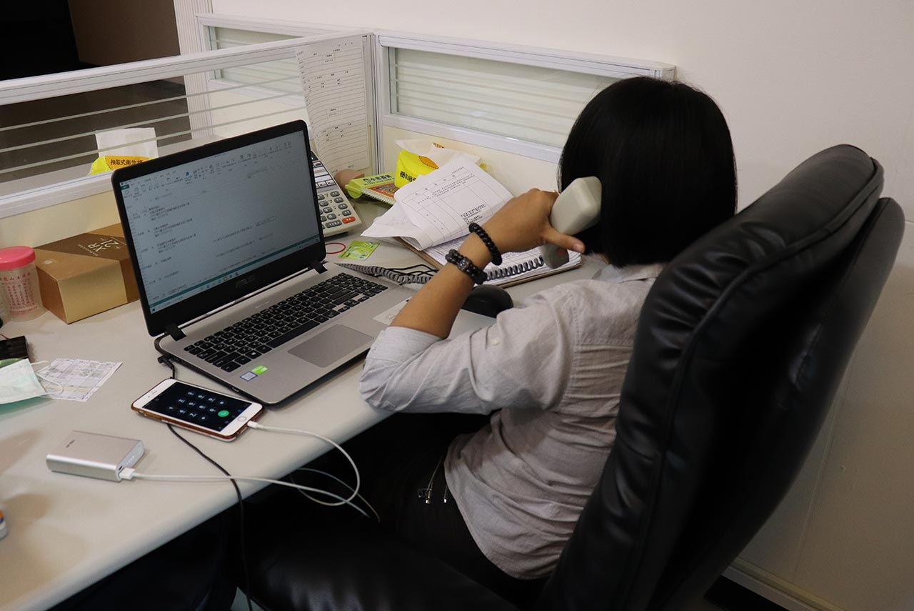 案件是否能促成最重要的關鍵人物其實在於「業務」,他們需要運用自己的專業與溝通技巧來說服客人選擇我們,通常業務其實不會時時刻刻都在公司,而是在外與客戶接洽,因此平常經過業務部只會有少少幾位業務在位置上,他們在公司時則會負責接諮詢專線以及調配調查員的工作,分配誰應該出什麼任務。